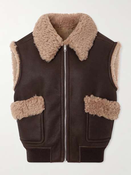 Bally’s vest nods to classic aviator styles with a contemporary, sleeveless twist. Cut from plush shearling in a boxy silhouette, it’s finished with tactile contrast trims and functional cargo pockets—perfect for carrying small essentials while keeping the look elevated.
