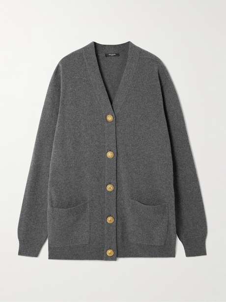 Balmain's cardigan has been knitted in France from plush cashmere and wool-blend. The relaxed fit only enhances its coziness.