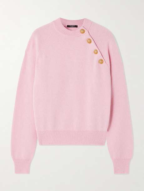 BALMAIN Button-embellished cashmere and wool-blend sweater