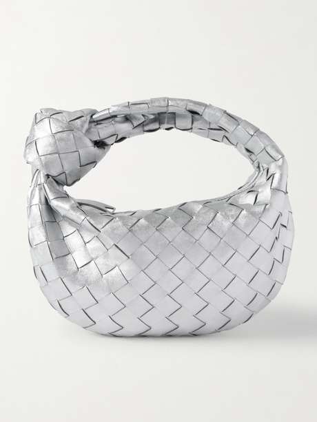 BOTTEGA VENETA Jodie mini knotted intrecciato distressed metallic leather tote
