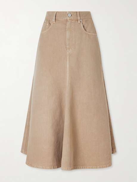 BRUNELLO CUCINELLI Cotton and linen-blend twill midi skirt