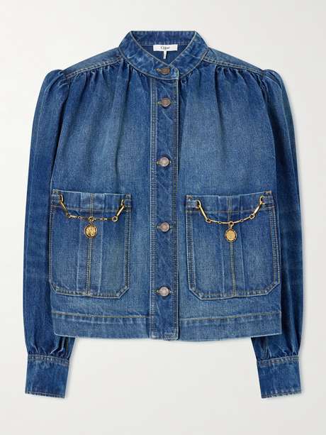 Chloé's jacket captures the maison's romantic Parisian spirit with a vintage-inspired twist. Cut from organic denim, it's detailed with softly gathered shoulders and oversized patch pockets adorned with gold-tone chain embellishments, adding subtle polish. Wear yours over a floaty dress and sandals.