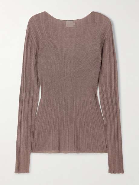 Deiji Studios' top looks delicate with its demi-sheer finish. It's open-knitted with wider stripes of ribbing across the sleeves and torso.