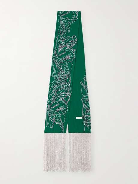 In signature Dries Van Noten style, this scarf is beautifully embellished with sparkling metallic threads and sequins arranged in floral motifs. It's made from fluid silk and is traced with swishy beaded fringe that'll sparkle day or night.