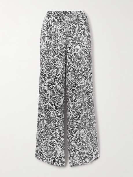 Dries Van Noten's pants are patterned with an array of lush florals made up of tiny dots. Cut from silk-satin, they have an elasticated drawstring waistband and fall to wide legs with floor-skimming cuffs. Wear yours as part of a monochrome outfit.