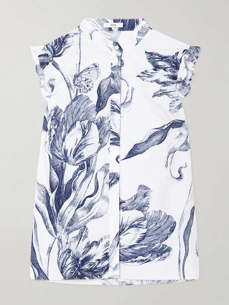 ERDEM Ruffled floral-print cotton-poplin blouse