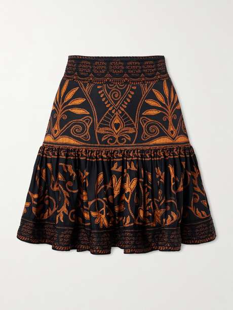 FARM RIO Cornely Ainika embroidered tiered voile mini skirt
