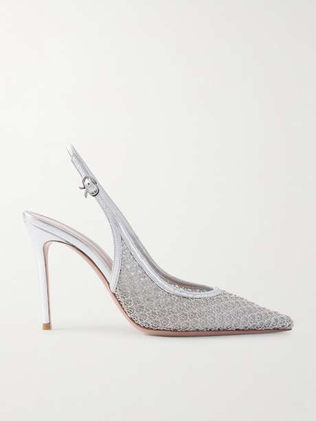 GIANVITO ROSSI Itaca 95 metallic leather-trimmed embellished mesh slingback pumps
