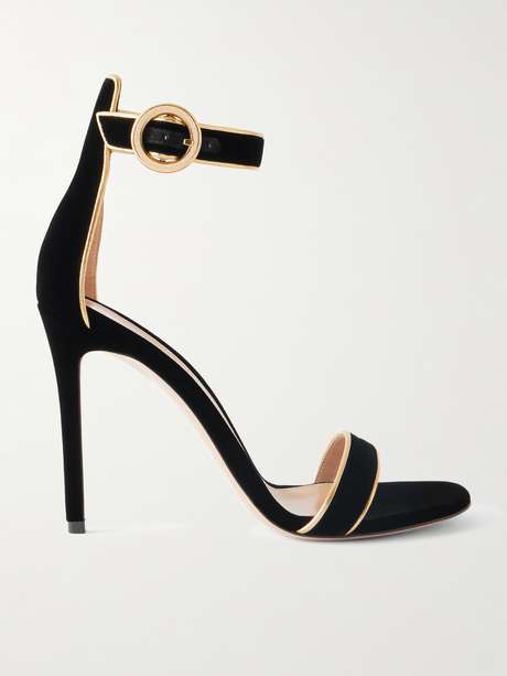 Gianvito Rossi's 'Portofino' sandals have been hand-finished in Italy from gold leather-trimmed velvet. This versatile pair has two slim straps that elegantly frame your ankles and toes and a chic, '60s-style round buckle. We'll be wearing ours with everything from dresses to denim.