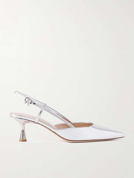 Gianvito Rossi's 'Ascent' pumps are perfect for countless occasions. Handmade in Italy from mirrored leather, they have pointed toes and slim slingback straps accented with dainty silver-tone ribbons. The 55mm heels make them easy to walk in.