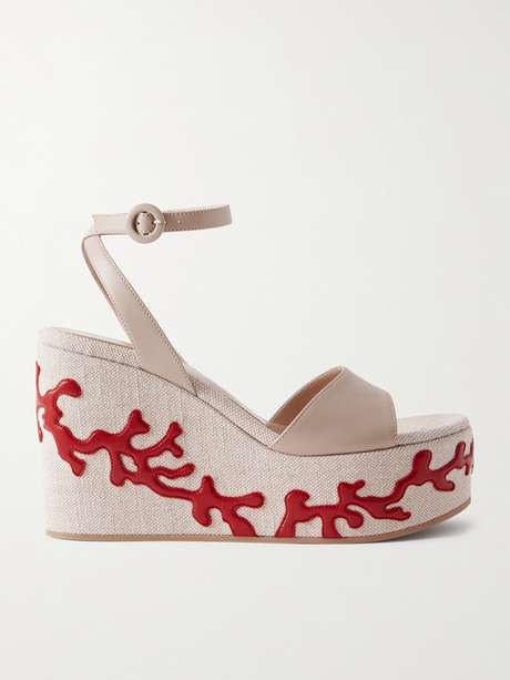 Gianvito Rossi's sandals have coral-inspired details that wrap around the platform soles, making them perfect for summer vacations. They've been made in Italy from leather and rest on canvas-covered wedge heels.
