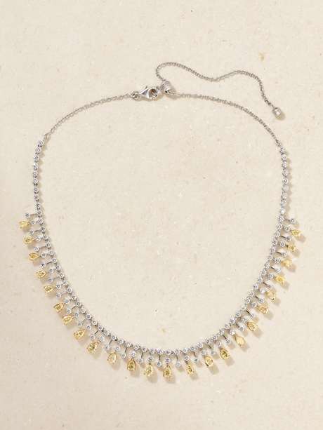 Harnessing the expertise of three generations of jewelers, KAMYEN believes they have the responsibility to showcase a gemstone's "raw emotion and transform it into something meaningful". Cast from 18-karat white and yellow gold, this necklace is strung with 3.30-carats of diamonds interspersed with pear-shaped fancy yellow ones. Adjust the length to your preferred drop.