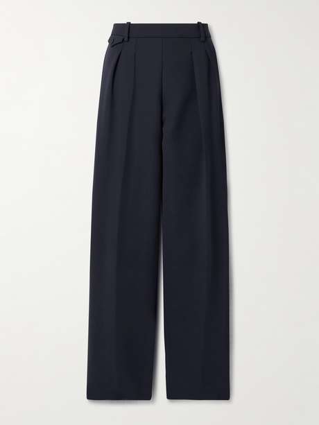 KHAITE's 'Dugan' pants made their first appearance on the Fall '25 runway. Tailored from crepe, they have a mid rise and tapered legs defined by neat pleats. Wear yours with a crisp shirt and loafers.