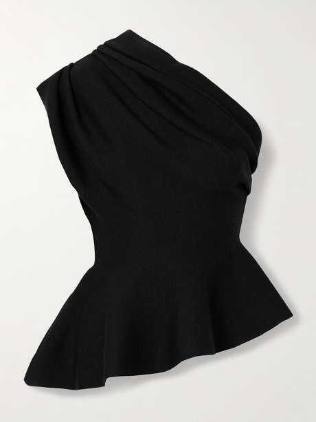 KHAITE's Fall '25 collection perfectly showcases Catherine Holstein's expert draping skills. This 'Aimee' top has been made in Italy from a wool-blend that's gently gathered along the one-shoulder neckline and falls to an asymmetric peplum hem. Style it with the brand's sleek tailoring.