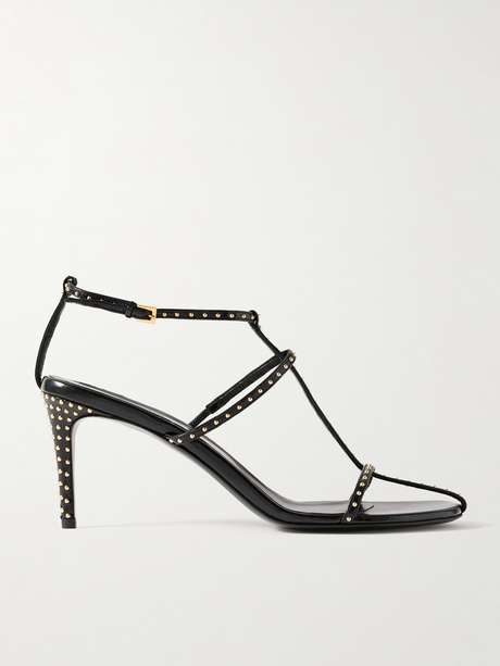KHAITE's sandals are named for their 'Cage'-like shape that subtly frame the foot. Made from black glossed-leather embellished with tiny studs, this pair is set on slender 75mm heels and has gently squared toes.