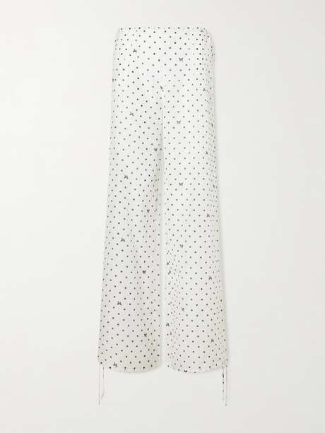 KIKI DE MONTPARNASSE Kiki polka-dot cotton and silk-blend wide-leg pants
