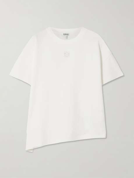 Loewe's T-shirt is cut from cotton-blend jersey and embroidered with the iconic 'Anagram' underneath the crew neckline. It has a relaxed shape with an asymmetric, split hem.