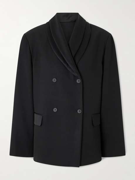 LOULOU DE SAISON Jiha double-breasted satin-trimmed woven blazer