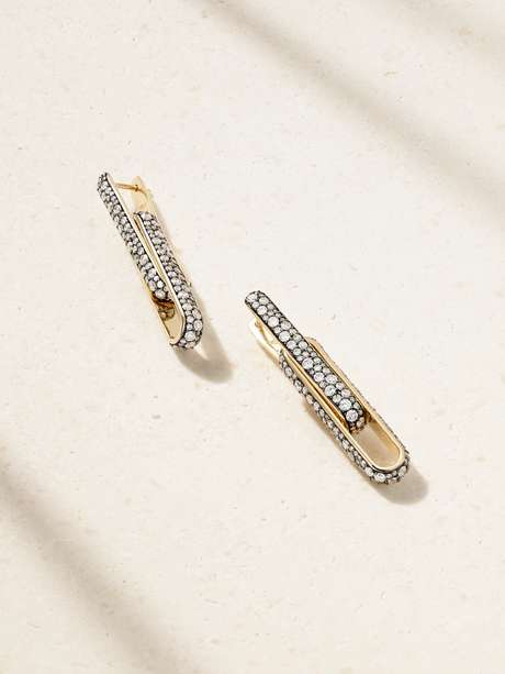 Lucy Delius adopts techniques from the Victorian era to create modern jewelry with ample charm. These 'Stirrup' earrings are crafted from 14-karat gold with interlocking trombone links and pavé-set with 3.84 carats of diamonds with a rhodium-plated backing for maximum sparkle.