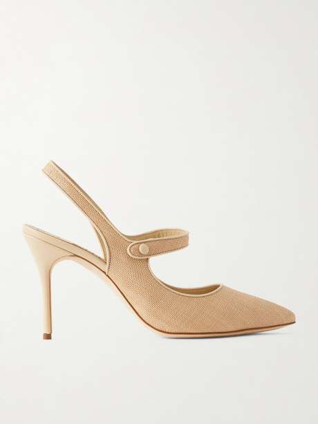Manolo Blahnik's 'Campari' slingback pumps rest on a 90mm stiletto heel that feels sleek and elegant. They're made from suede and have a classic Mary Jane silhouette. The beige colorway makes them your new go-to neutral.