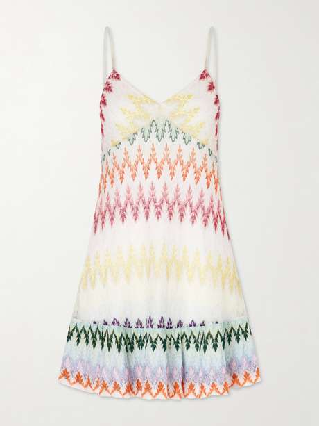 EXCLUSIVE AT NET-A-PORTER. Part of Missoni’s Summer Sunset capsule, this mini dress captures the glow of balmy evenings by the shore. Crochet-knitted in a different iteration of the house’s signature zigzag stripes, it's flecked with light-catching metallic threads and falls to a softly scalloped hem that enhances the breezy feel.