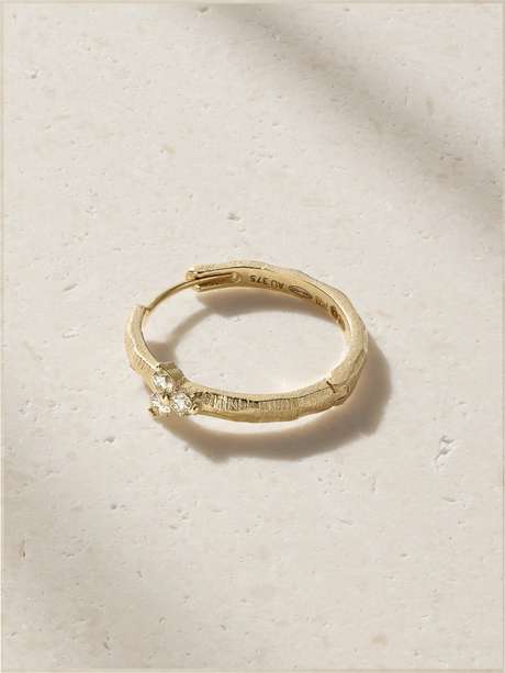 The light-catching, textured finish of Pascale Monvoisin's 'Gaby N°2' single earring is inspired by delicate gold leaf. It's handmade from 9-karat gold and set with a trio of twinkling diamonds. Wear yours stacked with the label's other styles.