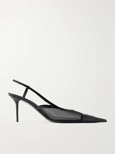 SAINT LAURENT is never afraid to play around with sharp shapes. These ‘Renée’ slingbacks have been made in Italy from mesh trimmed with patent-leather. They're embroidered with 'YSL' lettering at the toes.