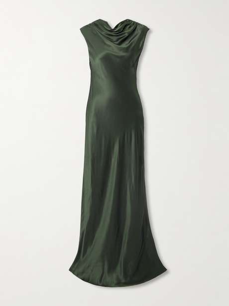 TWP's 'Back To You' gown will make a stunning entrance. Bias-cut from hammered satin that falls beautifully, it has an elegant cowl neckline and an open back tied with a sweet bow. The paneled, asymmetric skirt pools at the back.