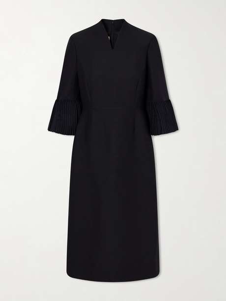 It's the little details that make Valentino Garavani's designs stand out. This dress is cut from the brand's signature wool and silk-blend crepe with a high V-neck and pleated cuffs. Classic pumps will offset the shape nicely.