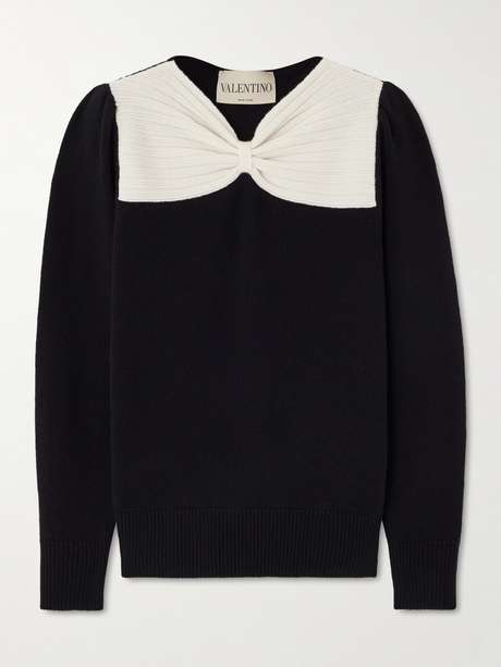 VALENTINO GARAVANI Bow-detailed two-tone wool sweater