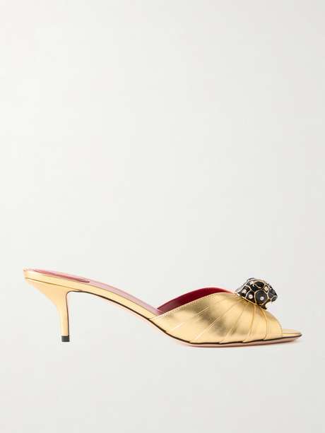 VALENTINO GARAVANI Panthea 55 embellished gathered metallic-leather mules