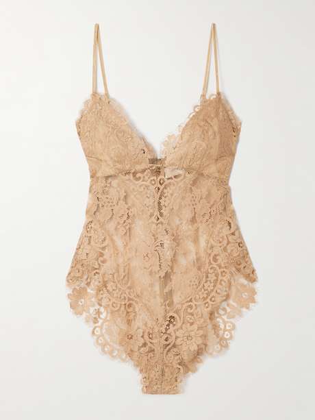 Zimmermann's romantic bodysuit is made from sheer lace with scalloped eyelash trims. Free of padding or underwire, it has a V-neckline and velvet straps that feel so soft against skin. Let yours peek out from beneath a chic blazer.