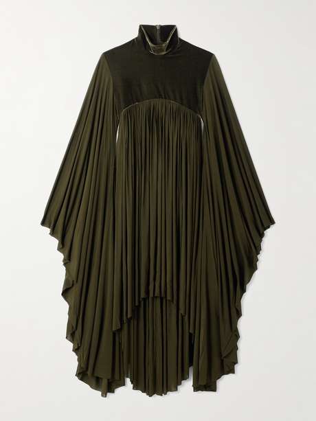 Zimmermann’s Fall ’25 collection emphasized fluid movement, and this dress flowed gracefully with every step on the runway. It's made from jersey that's gathered along the velvet-trimmed yoke and has a chic mock neckline.