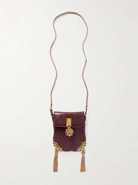 True to its name, Chloé’s ‘Château Treasures’ shoulder bag channels the mystique of a hidden trove. Crafted in Italy from textured-leather, it’s adorned with gold-tone hardware, including a crystal-studded orb and playful chain tassels. Stash your phone, cards and keys inside.