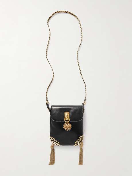 True to its name, Chloé's 'Château Treasures' shoulder bag channels the mystique of a hidden trove. Crafted in Italy from textured-leather, it’s adorned with gold-tone hardware, including a crystal-studded orb and playful chain tassels. Stash your phone, cards and keys inside.