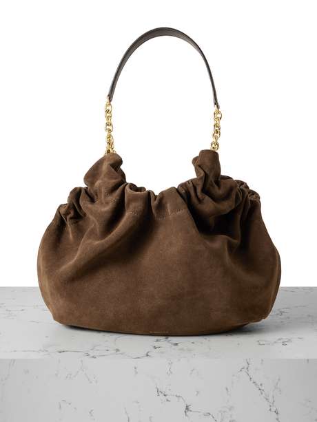 DeMellier's 'Miami' bag has a slouchy shape that's gathered along the top to create soft folds. Handcrafted from suede, it has a gold-tone chain strap to match the foiled logo lettering, and there's enough space inside for your phone, cardholder and sunglasses.