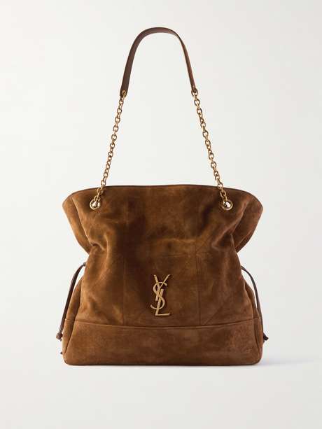 When you invest in a SAINT LAURENT bag, you take home a small piece of the maison's illustrious legacy. This 'Jamie Shopping' style has been crafted in Italy from quilted suede and embellished with the unmistakable 'YSL' logo. The gold-tone chain strap has a generous drop, so it'll slip comfortably over your shoulder, while the spacious interior boasts plenty of space for a continental wallet, cosmetics, tablet and water bottle.