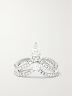 The singer had pushed ear styling to a whole new level – she sported a flurry of Messika diamonds peppered on huggies, studs and cuffs, with pear-shaped stones lavishly suspended from the ear. An apt choice for the Diamonds singer, who has always shown unique flair for jewelry styling. (This was especially true during her previous pregnancy, when she famously attended the launch of Fenty Beauty wearing a string of diamonds – another Messika high-jewelry creation – around her bump.) With the mixed-and-matched ear jewels all crafted in white gold, Rihanna’s Super Bowl performance cemented the burgeoning trend – white-gold jewelry is back.