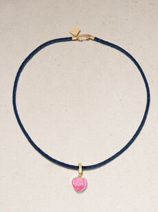 LAUREN RUBINSKILove Me 14-karat gold, enamel and leather necklace