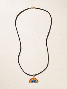 LAUREN RUBINSKIRainbow 14-karat gold, enamel and leather necklace