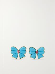 Those seeking a colorful exploration of the theme should seek out Mason and Books, a New York-based brand renowned for its quirky and cute bow motifs. Founder Jamie Books says the emblem developed organically, with four petals creating two hearts, and the two hearts joining to create a beautiful gift. “The ‘Evie’ bow was inspired by the birth of my daughter; the idea that she is the sum of love from her grandparents to parents, all coming together to create this perfect little gift,” she says. The three central diamonds symbolize past, present and future, and Books urges her customers to remember that today is a gift, so why not put a bow on it? To create the colorful ‘Berkeley’ styles featuring turquoise, sapphire, chrysoprase and emerald, the label also employs professional lapidaries, who have the combined artisanry expertise of more than a century and deliver perfectly finished pieces with irresistible gleam.