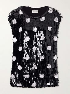 Not quite ready to commit to the look from top-to-toe? Consider an accessory instead. Amina Muaddi’s ‘Alexa’ mules look so chic paired with capris and an oversized leather jacket, while Valentino Garavani’s polka-dot shoulder bag will add a playful touch to off-duty and evening outfits. Alternatively, if your style is very much centered around jeans and a nice top, then upgrade your capsule with Nili Lotan’s ‘Alla’ blouse in sheer polka-dot chiffon.