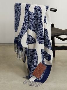 LOEWEFringed leather-trimmed wool-jacquard blanket