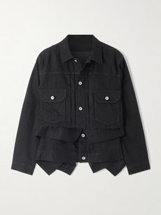 SACAILayered frayed wool felt-trimmed denim jacket$882.00View Product DetailsSelect a Size1 - out of stock2 - out of stock3 - out of stock4 - out of stock