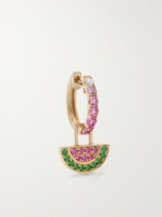 ROBINSON PELHAMOrb Midi and Watermelon EarWish 14-karat gold multi-stone single hoop earring