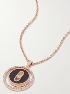 Fine jewelers are also exploring raven-hued jewels, offering petite yet precious pieces that liven up plain stacks of gold. There are the enamel maestros – Repossi, Marlo Laz and Yvonne Léon offer striking combinations of jet-black enamel paired with rose or yellow gold, while others explore the fathomless darkness of natural onyx. A decorative carving material, onyx can be traced back to Ancient Egyptian, Greek and Roman civilizations, when it was often employed for its purported talismanic properties. Retrouvaí’s ‘Puzzle’ pendant is a perfect example of onyx’s glossy allure, while Jennifer Meyer’s petite ‘Mini Heart’ necklace, Viltier’s ‘Magnetic’ motif, and Andrea Fohrman’s ‘Mini Cosmo’ earrings offer tiny pops of bold black. L’Atelier Nawbar employs onyx to provide an elegant contrast with white mother of pearl, while David Yurman’s convertible ‘Elements’ earrings bear high-shine black discs that can be added or removed according to your dress code.
