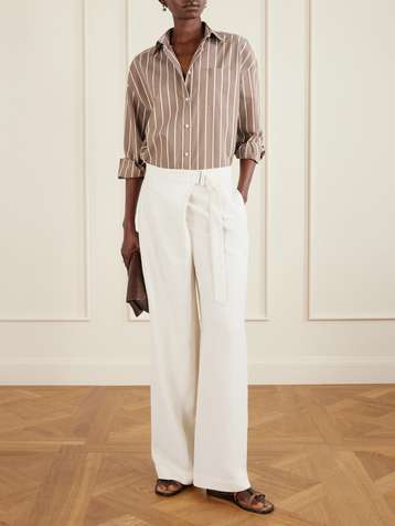 Explore our range of designer wide leg pants from labels such as Suzie Kondi, Tom Ford, Veronica Beard and more. The collection features many different designs, including Vince's cropped ribbed-knit trousers and LVIR's pleated faux-leather pants. Shop the range to find the best wide leg pants for your wardrobe.