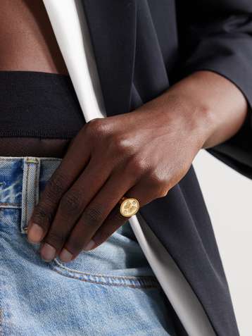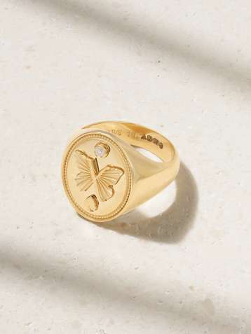 Bird's Eye Pause Internal Compass 18-karat gold diamond signet ring