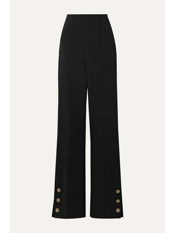 Button-embellished stretch wool-blend crepe straight-leg pants
