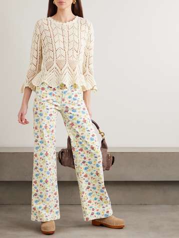 Hustler Roller Patch Pocket floral-print high-rise bootcut jeans